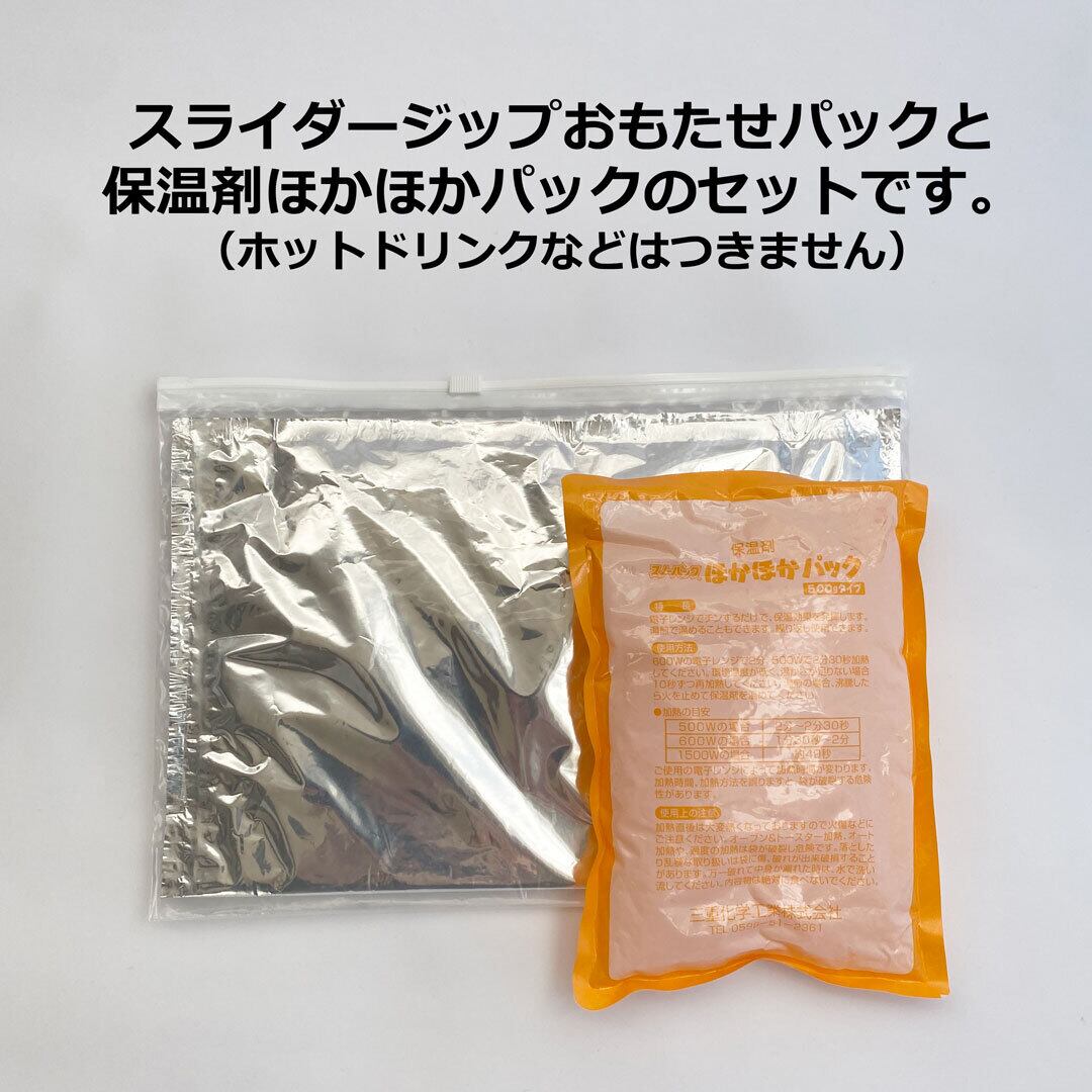 ●おもたせパックとほかほかパックセットの販売です。ペットボトルなどはつきません。