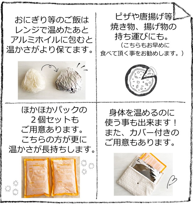 レンジで簡単に温められる「ほかほかパック」とセットになっています。